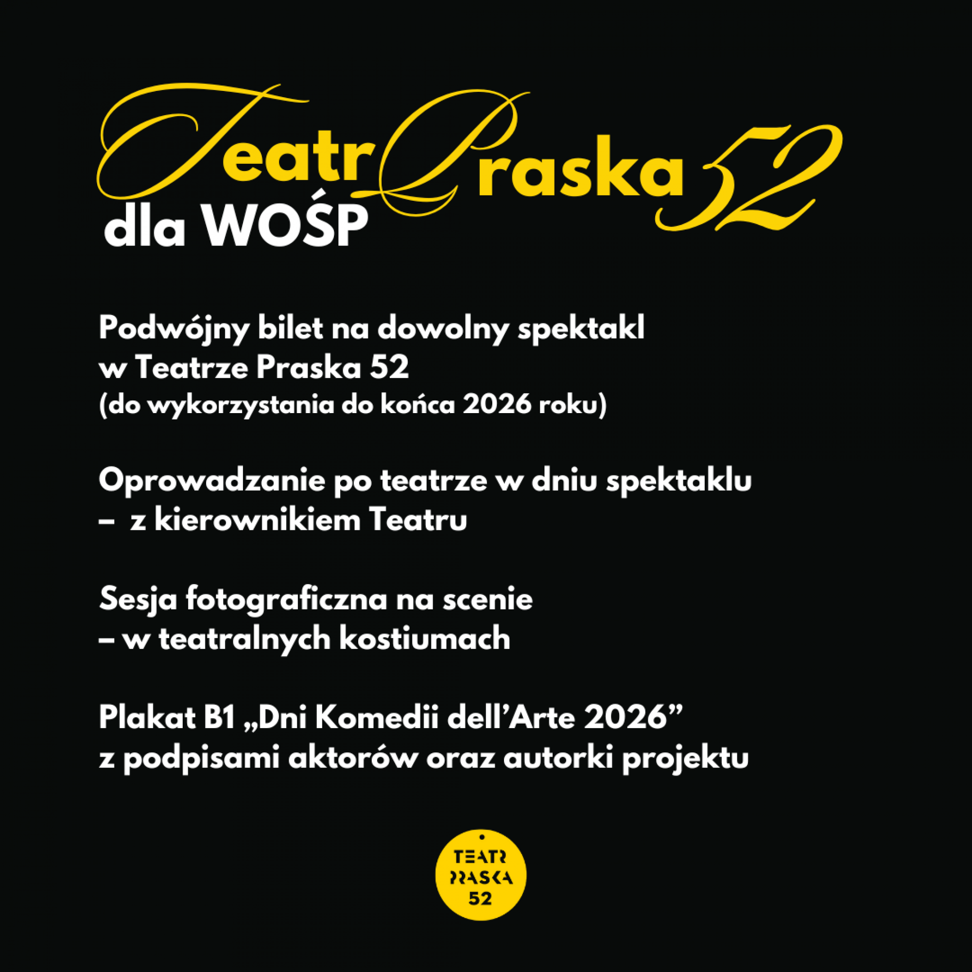 Już po raz kolejny Centrum Kultury Podgórza angażuje się w Finał Wielkiej Orkiestry Świątecznej Pomocy! W tym roku, poza tradycyjną zbiórką pieniędzy do puszek, zapraszamy również do wzięcia udziału w licytacji wyjątkowego doświadczenia teatralnego w Teatrze Praska 52, działającego w strukturach Centrum Kultury Podgórza! Zapraszamy również do pomagania w duchu sportowej rywalizacji podczas 13. Biegu Wielkich Serc oraz do odwiedzenia naszego stoiska w Galerii Kazimierz 25 stycznia. Wesprzyjmy 34. Finał Wielkiej Orkiestry Świątecznej Pomocy, dedykowany diagnostyce i leczeniu chorób przewodu pokarmowego u najmłodszych pacjentów, realizowanego pod hasłem „Zdrowe brzuszki naszych dzieci”.