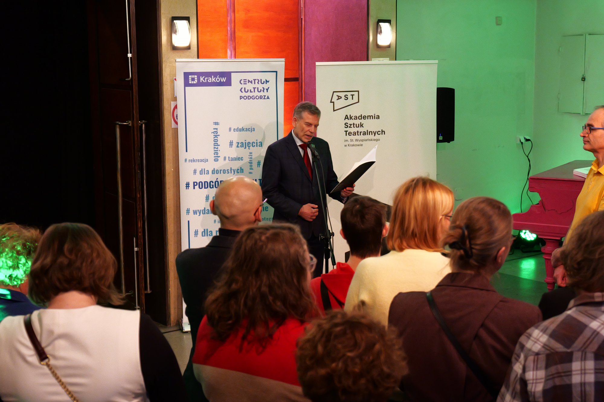 Zanim jednak pojawiły się pierwsze pomysły scenariuszowe, projekt rozpoczął się od bardzo ważnego etapu – warsztatów konsultacyjnych. To wtedy, podczas serii spotkań, zespół Centrum Kultury Podgórza oraz Akademii Sztuk Teatralnych wsłuchiwał się w potrzeby przyszłych uczestników. Analizowano, co może im pomóc w bezpiecznym i przyjaznym wejściu do świata teatru, jakie bariery napotykają w instytucjach kultury i jak sprawić, by czuli się w nich swobodnie. Te rozmowy były fundamentem – pozwoliły zbudować taki program, który realnie otwierał drzwi, zamiast tworzyć kolejne przeszkody.