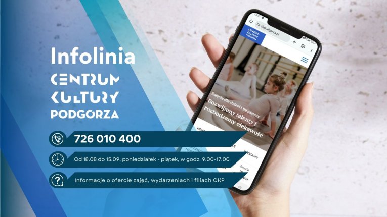 Wychodząc naprzeciw Państwa potrzebom uruchomiliśmy w Centrum Kultury Podgórza infolinię dotyczącą wszystkich zajęć i wydarzeń w całej instytucji.