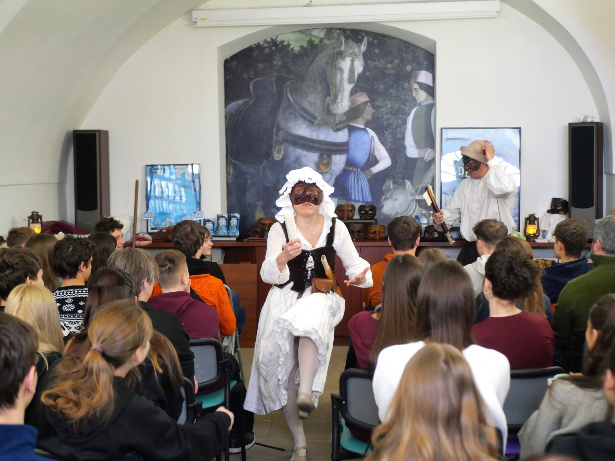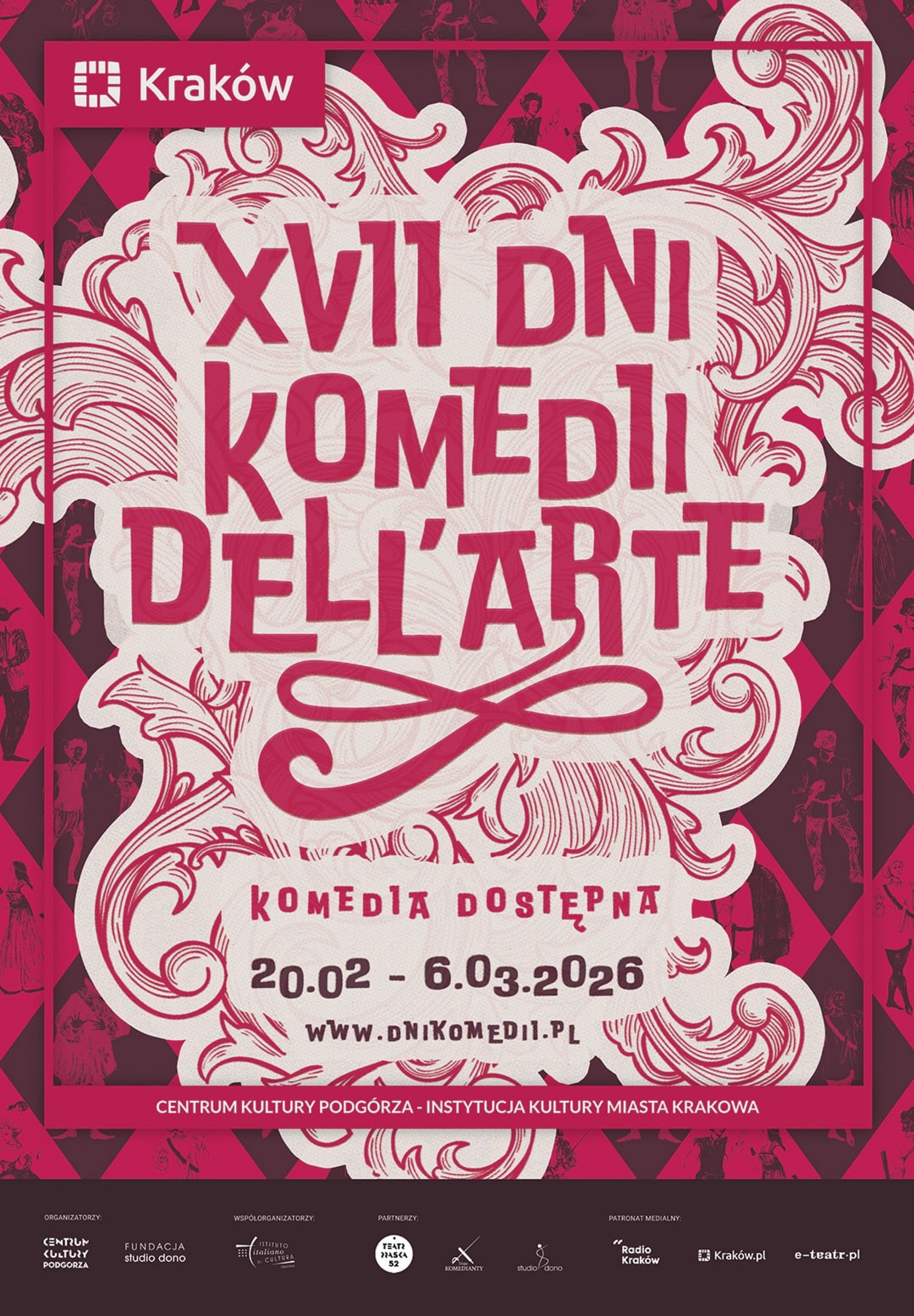 23 lutego, 10:00 | Włoski Instytut Kultury2, 3, 4 marca, 9:30 | Filie Centrum Kultury Podgórza: Klub Płaszów, Klub Piaskownica, Klub Aleksandry – Lekcje o komedii dell’arte dla młodzieży licealnejLekcje o komedii dell’arte poprowadzą Agnieszka Cianciara-Fröhlich – dyrektor artystyczna Dni Komedii, capocomico Trupy Komedianty, aktorka, reżyserka i teatrolożka oraz Jonathan Fröhlich, aktor tego samego zespołu, który od lat tworzy skórzane maski zgodnie z tradycyjnymi włoskimi technikami. To duet z ogromnym doświadczeniem i pasją. Podczas zajęć opowiedzą o XVI-wiecznych korzeniach sztuki dell’arte, jej rozwoju na przestrzeni wieków i współczesnej formie, przybliżając uczestnikom fundamenty, z których wyrósł dzisiejszy teatr.