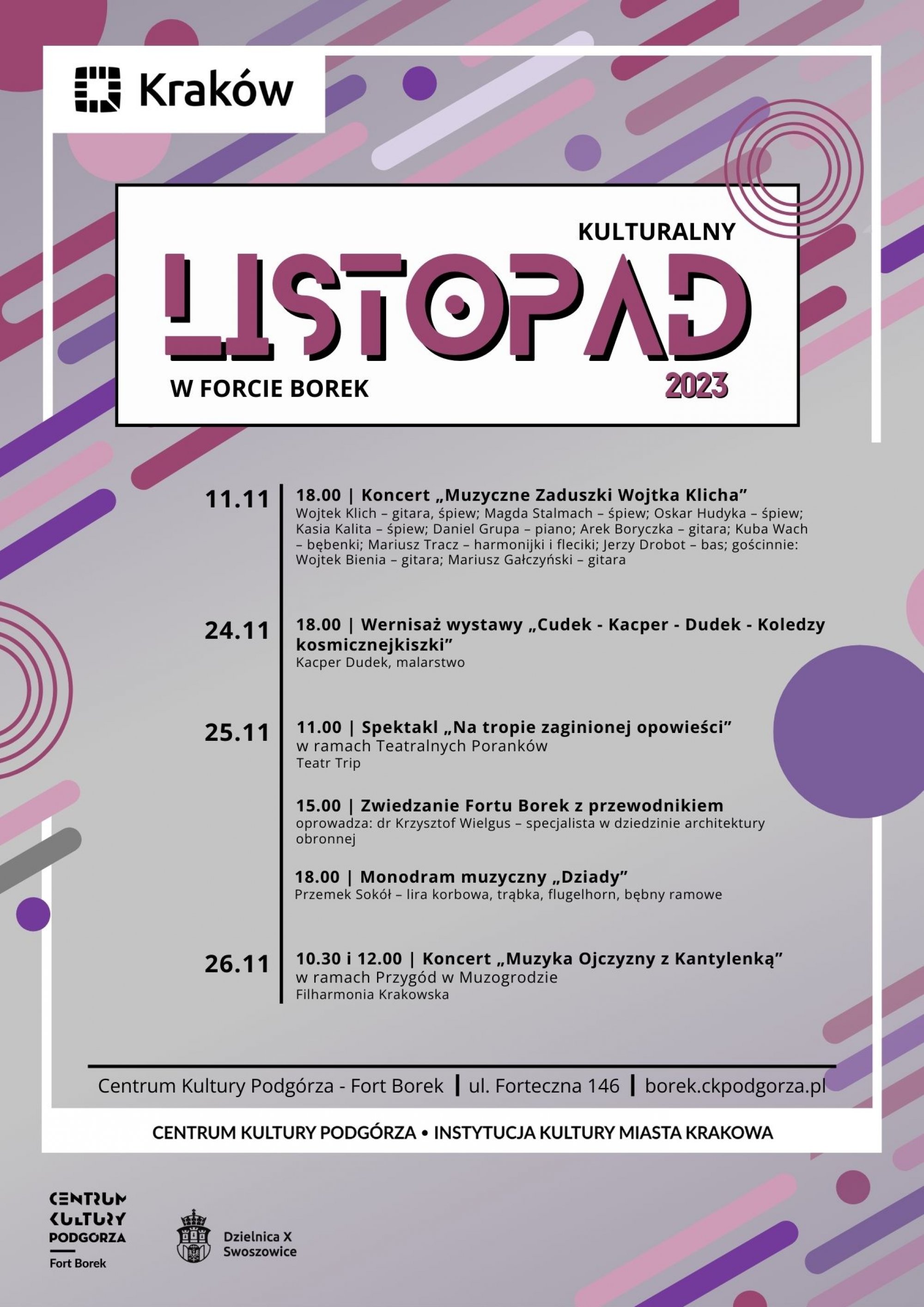 „Ciemno wszędzie, głucho wszędzie, Co to będzie? Co to będzie?” W czasie jesiennej zadumy zapraszamy na muzyczny monodram pt. „Dziady” w wykonaniu Przemka Sokoła. Lira korbowa, trąbka, flugelhorn, bębny ramowe, tekst „Dziadów” Adama Mickiewicza w akompaniamencie muzyki tworzą wyjątkowe etno-jazzowe połączenie o wręcz sakralnej mocy. Więcej