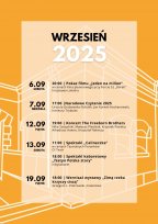 Wraz z pierwszym dniem września prezentujemy nasz program wydarzeń! Słońce świeci już trochę niżej, dni stają się krótsze, ale to wcale nie oznacza nudy! Wręcz przeciwnie! Przygotowaliśmy dla Was mnóstwo interesujących propozycji!