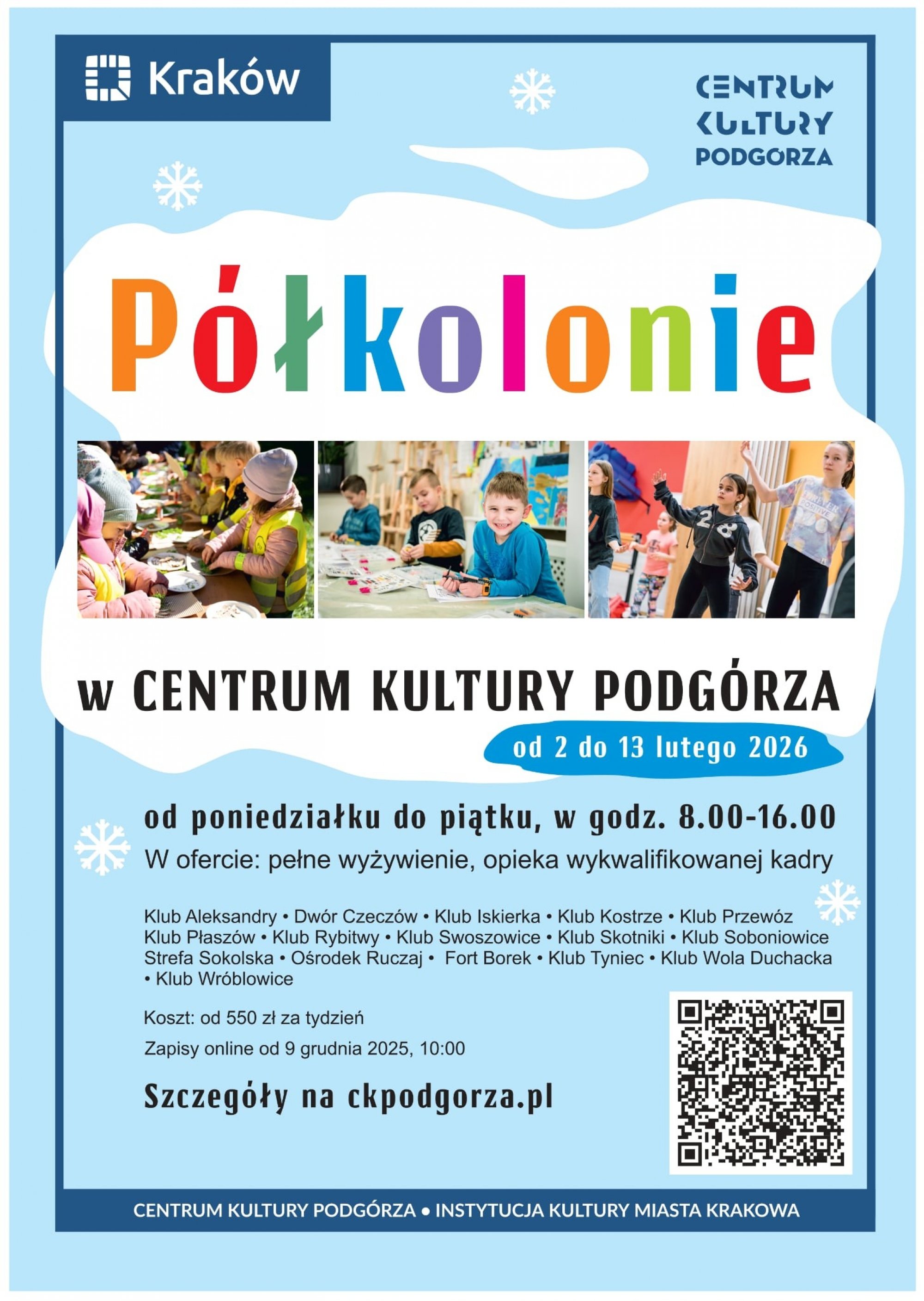 Koszt: 650 zł/turnus (I turnus: 2-6 lutego, II turnus: 9-13 lutego)