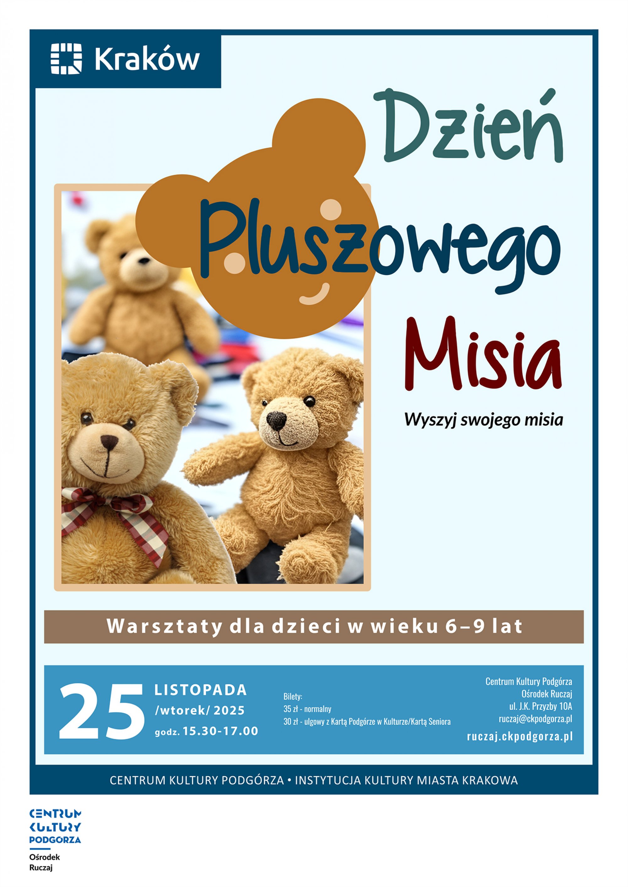Zapraszamy dzieci w wieku 6–9 lat na wyjątkowe warsztaty, podczas których każdy uczestnik stworzy własnego, mięciutkiego misia-przytulankę!