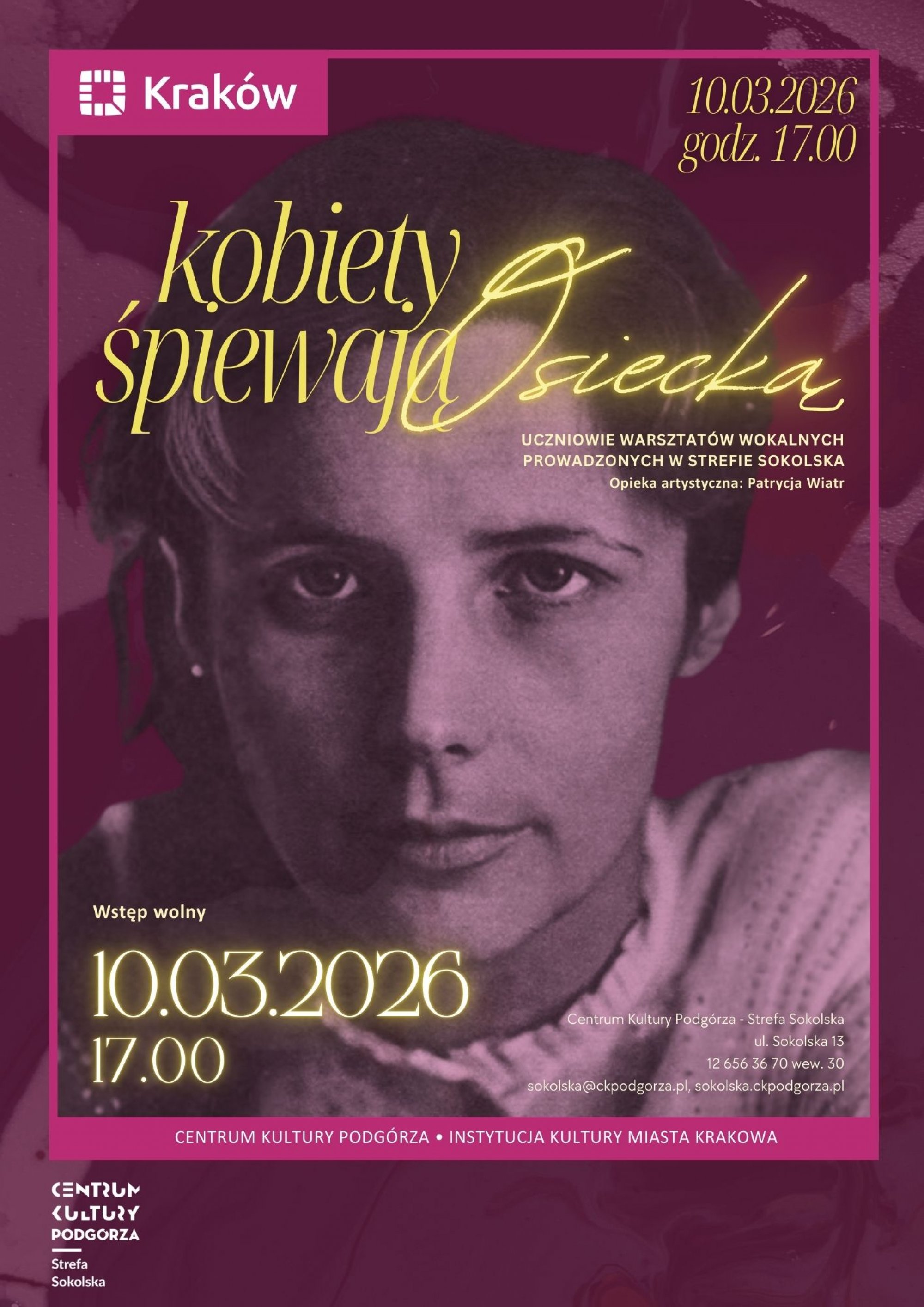 Koncert przygotowany i wykonany przez uczestników warsztatów wokalnych. Wydarzenie w ramach V edycji Miesiąca Krakowianek.