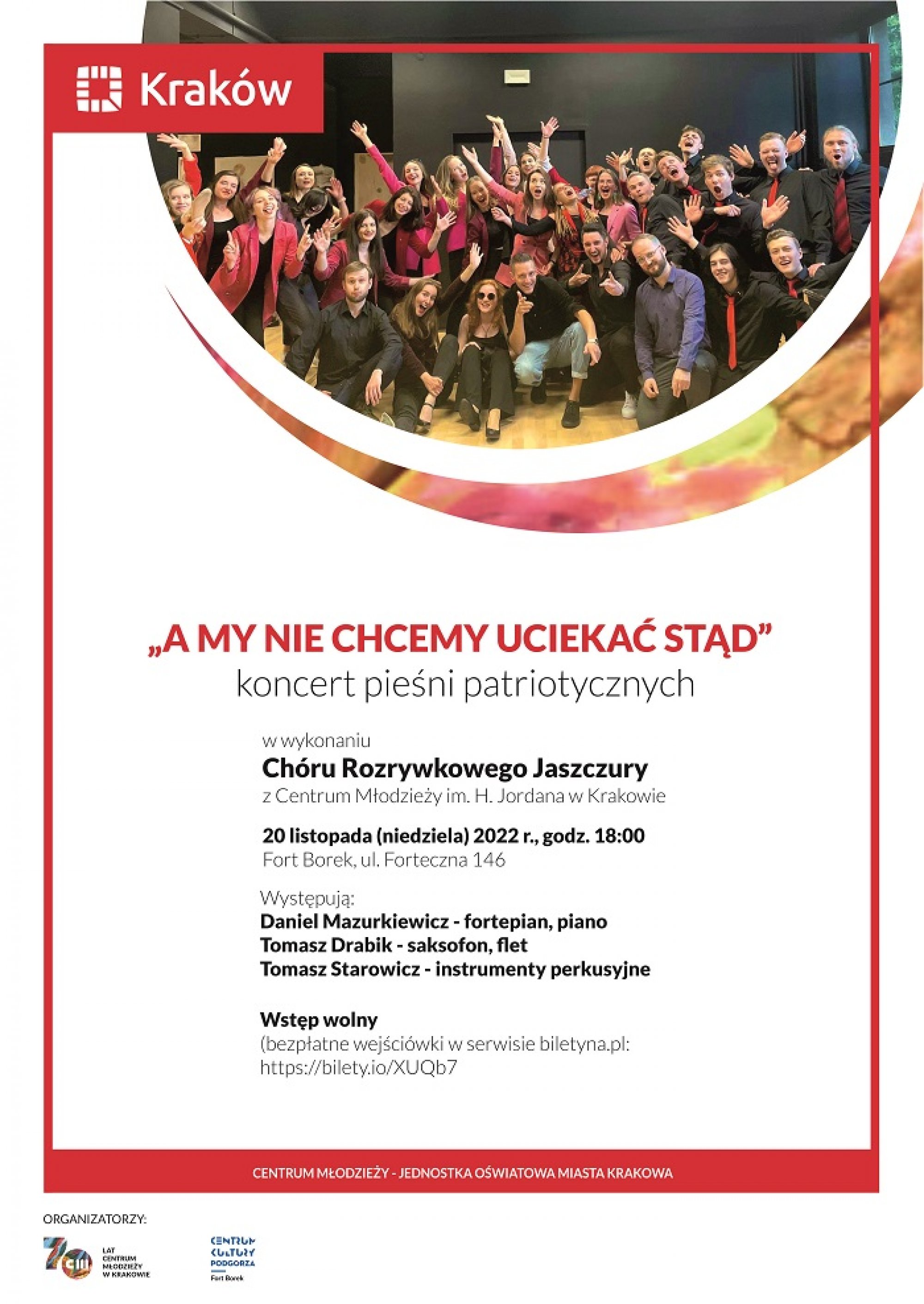 Centrum Młodzieży im. H. Jordana oraz Centrum Kultury Podgórza - Fort Borek zapraszają na koncert pieśni patriotycznych pt. "A my nie chcemy uciekać stąd".