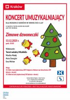 Koncert umuzykalniający w oparciu o teorię uczenia się muzyki prof. E.E. Gordona. Dzyn dzyn dzyn, dzyn dzyn dzyn....zapraszamy serdecznie na świąteczny koncert gordonowski, w którym zimowa magia radosnych i lekkich aranżacji piosenek bożonarodzeniowych oraz kolęd wprowadzi nas w świąteczny nastrój. Wraz z MiLaReDo rozgrzejecie zmarznięte paluszki i potupiecie z reniferkami...a dzwoneczki będą wam towarzyszyć w zabawach. Zapraszamy ciepło tych najmniejszych i tych większych do muzycznego zimowego świata MiLaReDo. Serdecznie zapraszają: Monika Madej•Anna Szuwgier•Ewa Wicher
