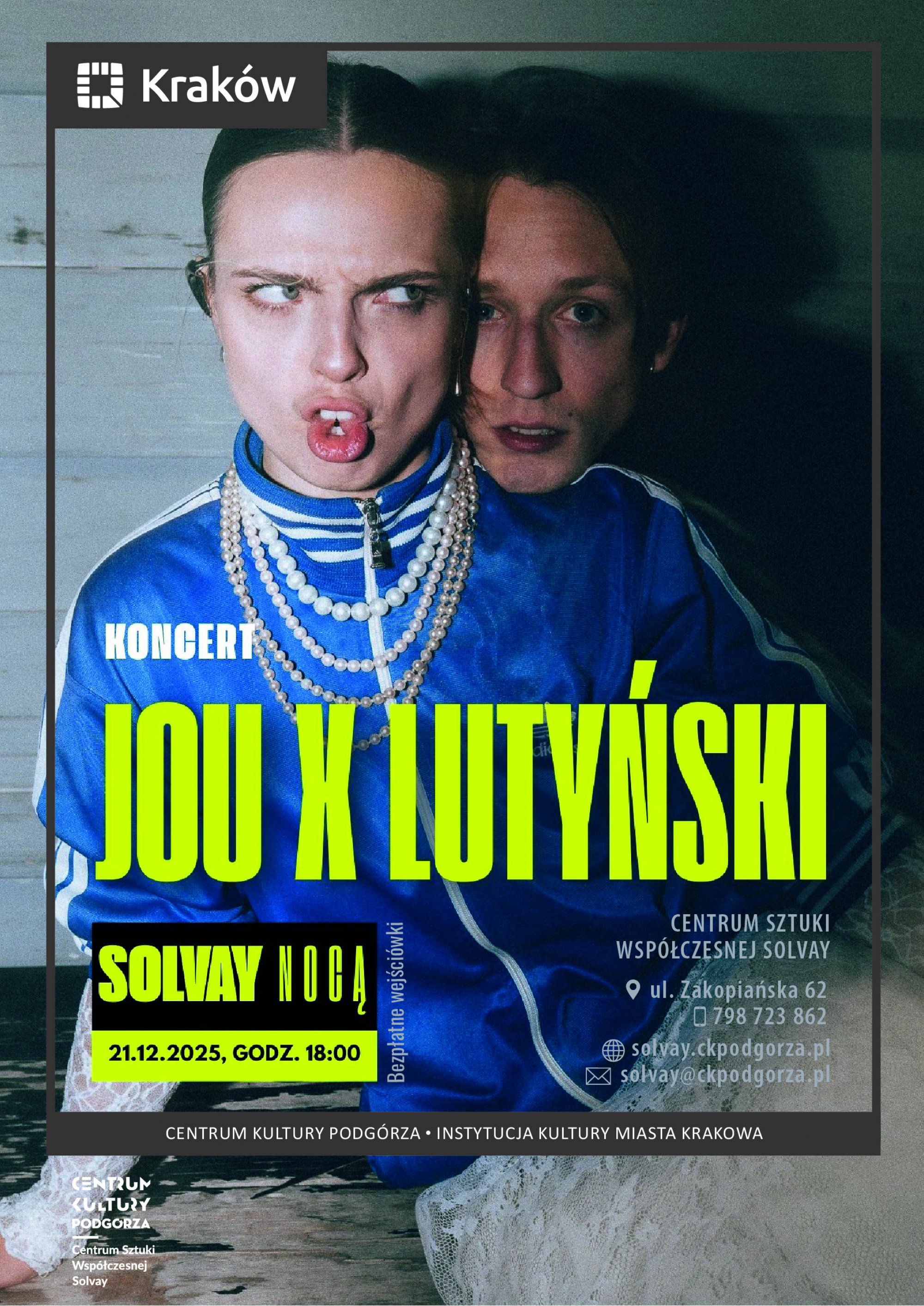 Rozpoczynamy cykl Solvay Nocą - wielkie otwarcie musi być opatrzone wyjątkowym koncertem, dlatego zaprosiliśmy zespół Jou x Lutyński, którzy stworzą dla Was niezapomnianą atmosferę muzyki, poezji i aktorskiego performansu.