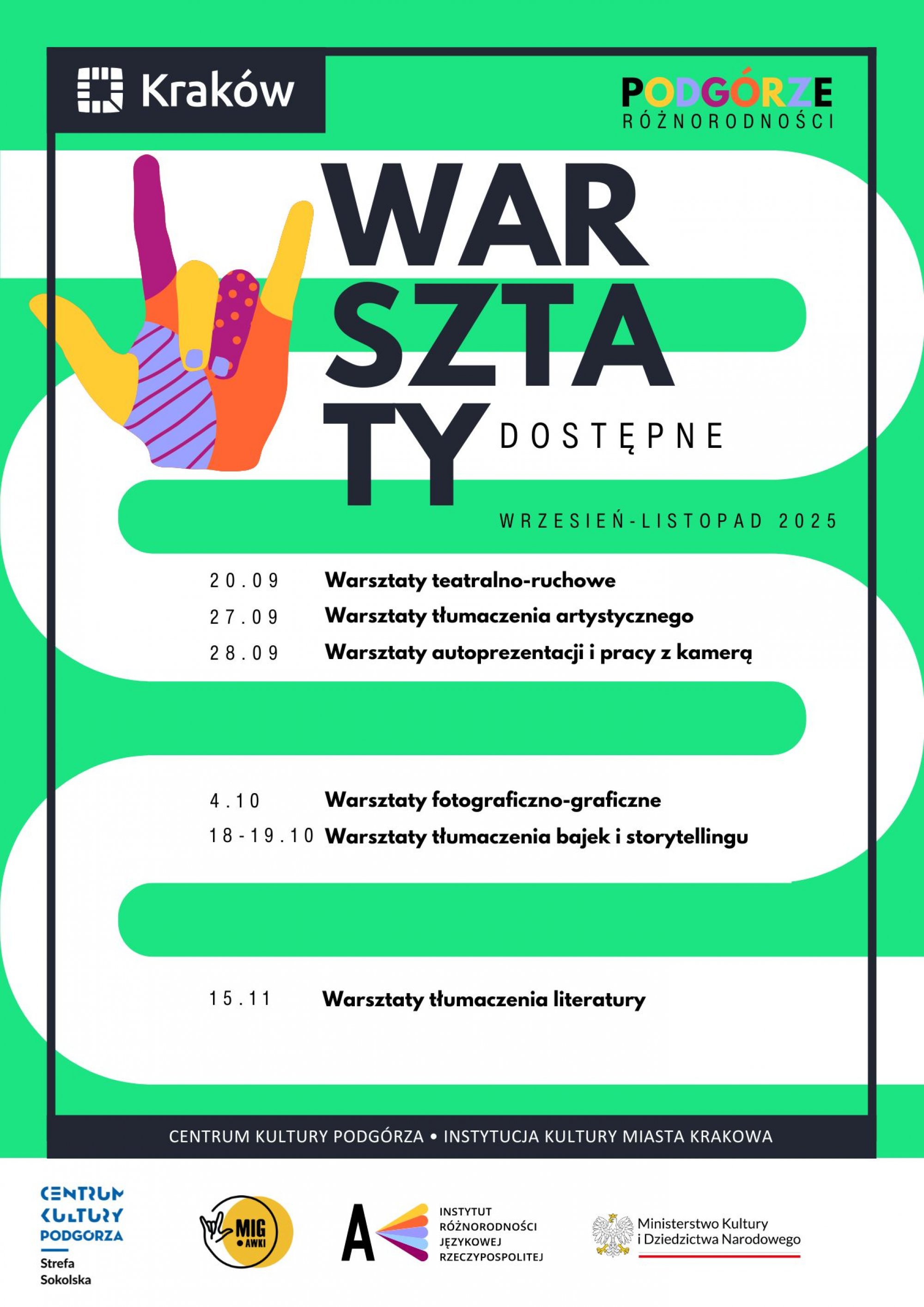 Warsztaty prowadzone będę w PJM bez tłumaczenia na język polski. Wstęp wolny.