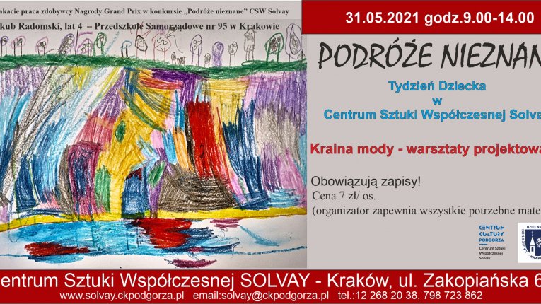 W sobotę 5 czerwca 2021 o godzinie 11:00, w dniu finału naszej podróży, na sali widowiskowej CSW Solvay młodzi projektanci wezmą udział w pokazie mody, w czasie którego zaprezentują wykonane przez siebie stroje.