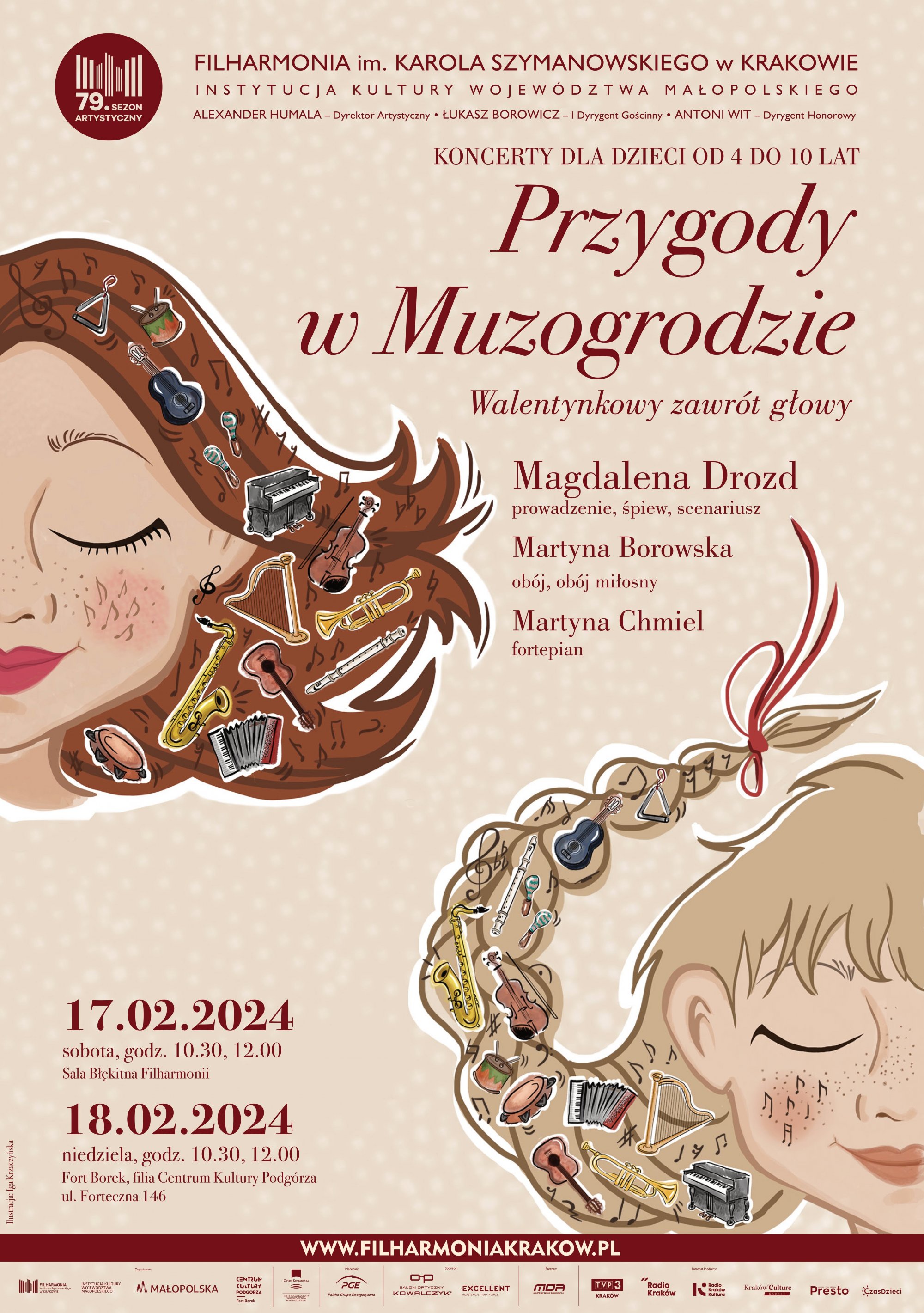 W ramach współpracy Filharmonii Krakowskiej z Centrum Kultury Podgórza-Fort Borek zapraszamy wszystkie dzieci z rodzicami na niedzielne (18.02.2024) przedstawienie muzyczno-edukacyjne z cyklu Przygody w Muzogrodzie.