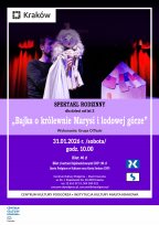 Zapraszamy na spektakl dla dzieci "Bajka o królewnie Marysi i lodowej górze" w wykonaniu Grupy O!Teatr, który odbędzie się w sobotę 31 stycznia 2026 roku o godzinie 10.00 w Dworze Czeczów.