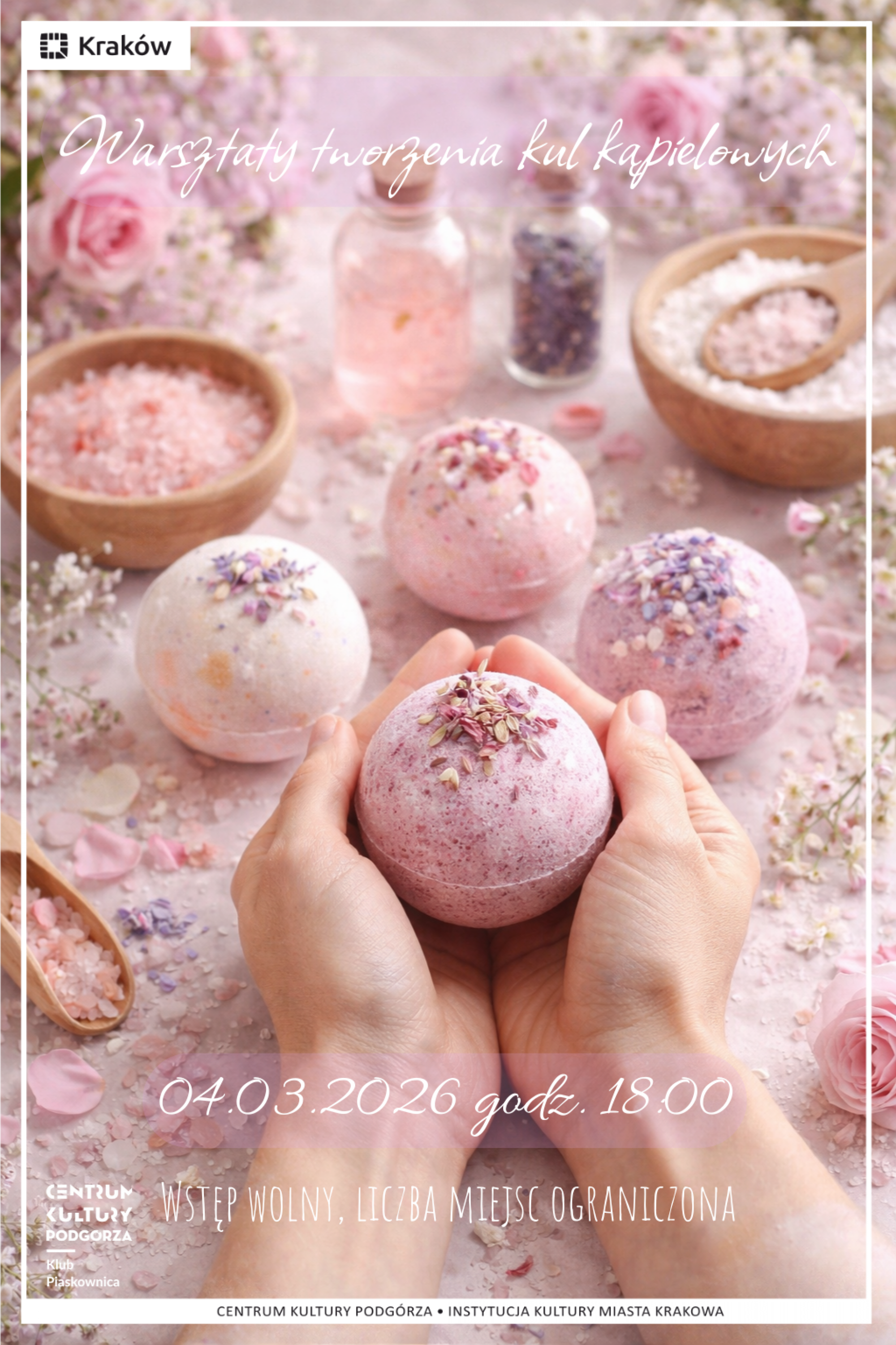 Już 04.03 o godz. 18:00 spotykamy się w Klubie Piaskownica, by wspólnie stworzyć pachnące, kolorowe kule do kąpieli – idealne na chwilę relaksu tylko dla siebie lub jako prezent dla kogoś bliskiego.