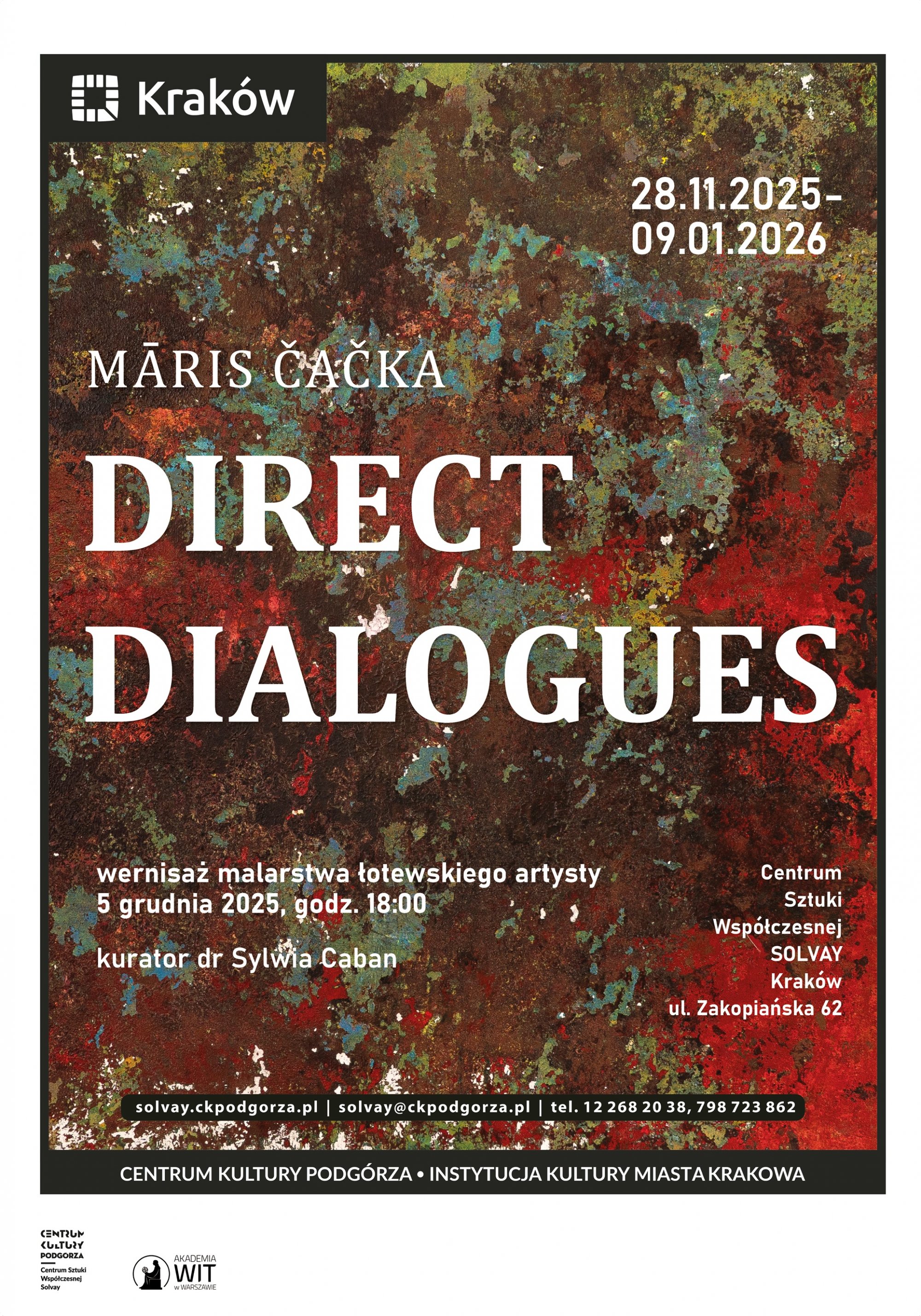 Serdecznie zapraszamy na wernisaż wystawy "Direct Dialogues" Akademii WIT autorstwa łotewskiego artysty Marisa Cacka, który odbędzie się 5 grudnia o godzinie 18:00 w Galerii Białej CSW Solvay.