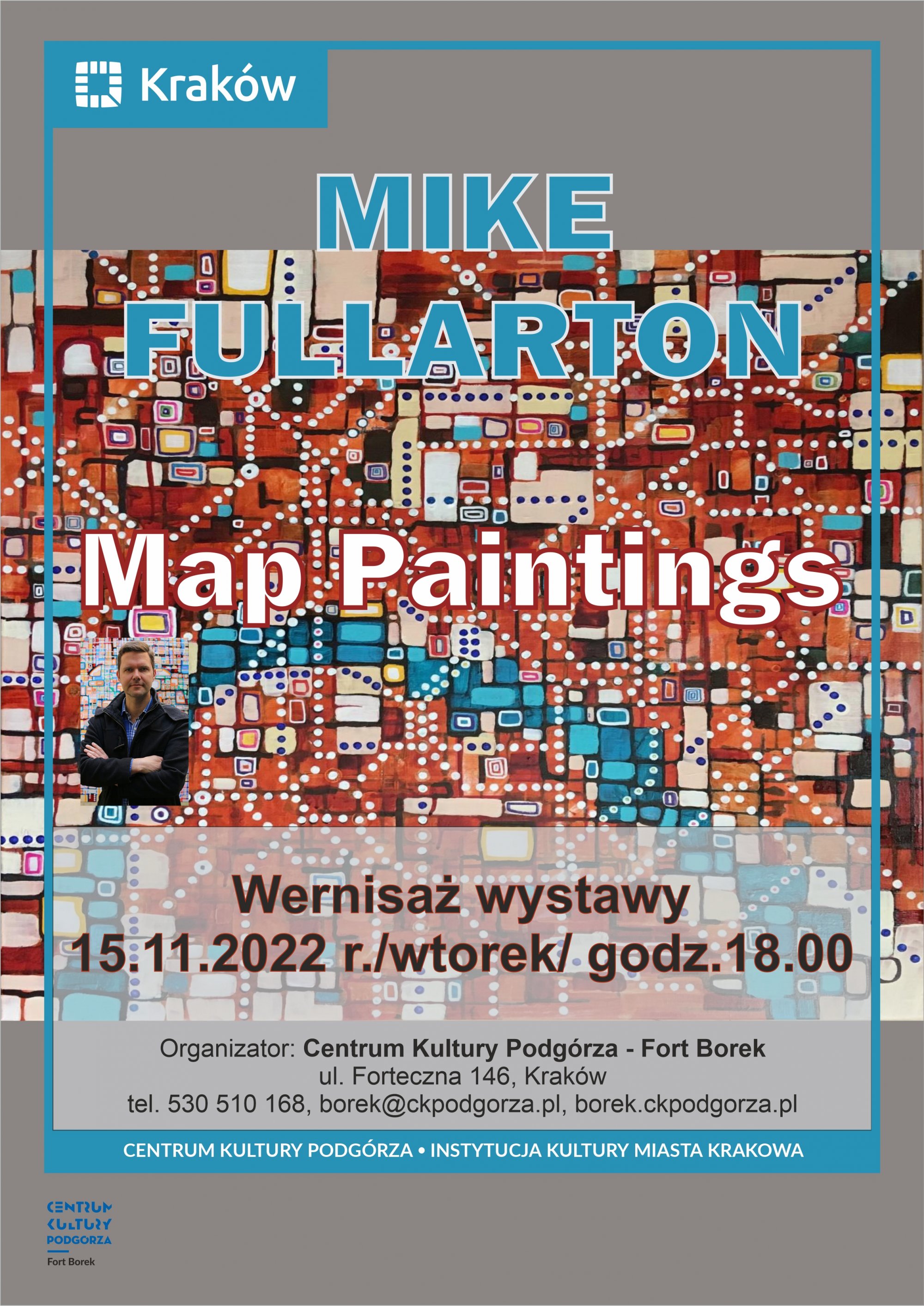 Na wystawie "Map Paintings" autorstwa Mike'a Fullartona prezentowane będą obrazy z serii map, które są eksploracją różnych tras komunikacyjnych/metrowych współczesnych miast na całym świecie oraz wzorów, jakie mogą wyłonić się z ich fragmentacji i abstrakcji.