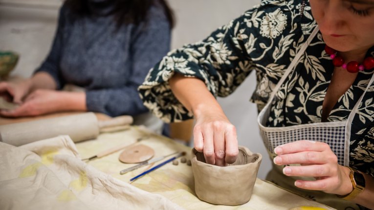Pracownia, w której twórcy działający pod okiem mistrzowskich instruktorów uczą się w cotygodniowym cyklu rozmaitych technik pracy w glinie oraz wykańczania prac (w tym barwienia, szkliwienia itd.). Pracownia działa w celu: ● poznawczym: nauka pracy z materiałami o różnej strukturze ● uwrażliwiającym: kształtowanie poczucia estetyki i piękna ● rozwoju zdolności manualnych: tworzenie prac płaskich, przestrzennych i półprzestrzennych ● terapeutycznym - pomoc w koncentracji, wyciszeniu, praca nad poczuciem własnej wartości wynikającej z poczucia sprawstwa i zadowolenia z piękna pracy własnych rąk Prace uczestników są prezentowane dwa razy w roku w galeriach filii Centrum Kultury Podgórza. Uczniowie pracowni plastycznych biorą też udział w konkursach plastycznych, zgłaszając do nich wykonane prace. Część pracowni ceramicznych CKP dysponuje własnymi piecami ceramicznymi, co umożliwia wykonywanie wszystkich kroków tworzenia dzieł ceramicznych na miejscu.