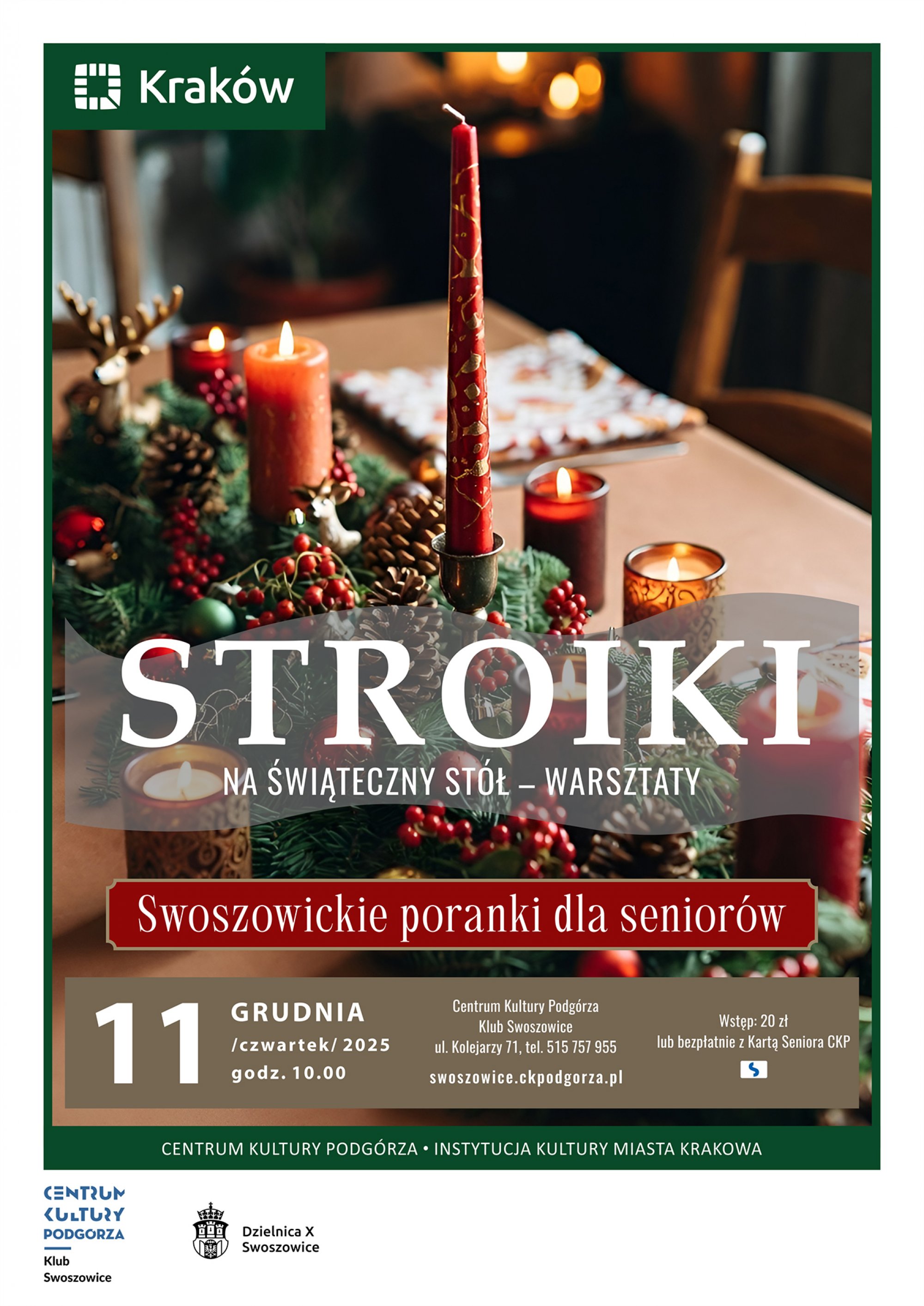 W magicznej, przedświątecznej atmosferze zapraszamy wszystkich Seniorów na wyjątkowe spotkania z cyklu Swoszowickie Poranki dla Seniorów.